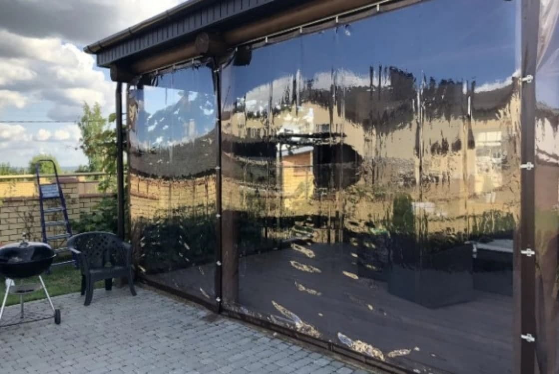 Выполненные работы: Установлена портально-сдвижная дверь, Профильная система REHAU Thermo, Ламинация изделий под дерево, Фурнитура Siegenia, Стеклопакет 40 мм с i-стеклом