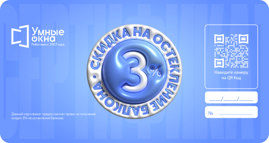Скидка 3% на остекление балкона или лоджии при заказе в период действия акции «Выгодные балконы».